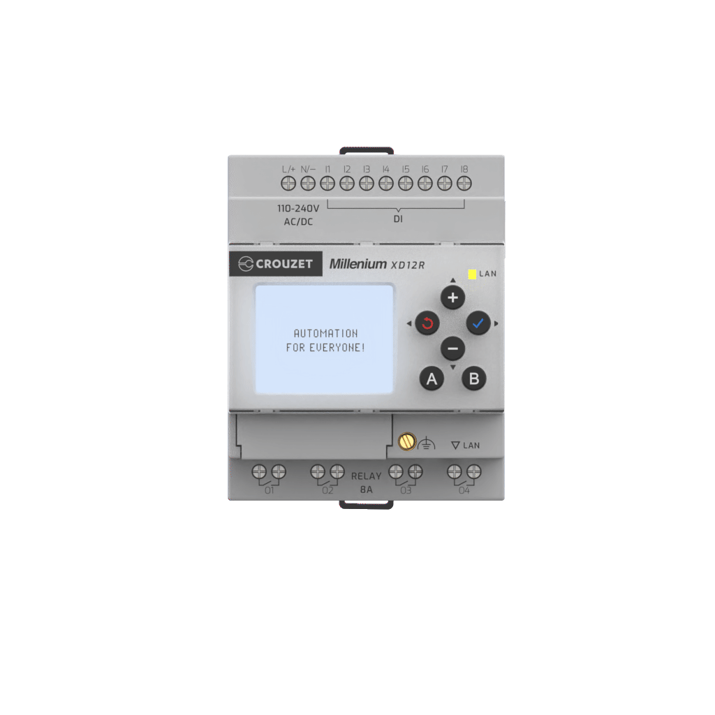 The 20 years of automation heritage with Millenium 3, have evolved into our New Millenium, making it a compact, versatile and communication-ready logic controller, for all your upcoming small-automation projects. We kept all the features you liked, with a refreshing twist to make it even better and easier. Now powered by Crouzet Soft, the easiest-to-use automation tool ever, for users of all experience levels, it's function block based and with no code needed!
