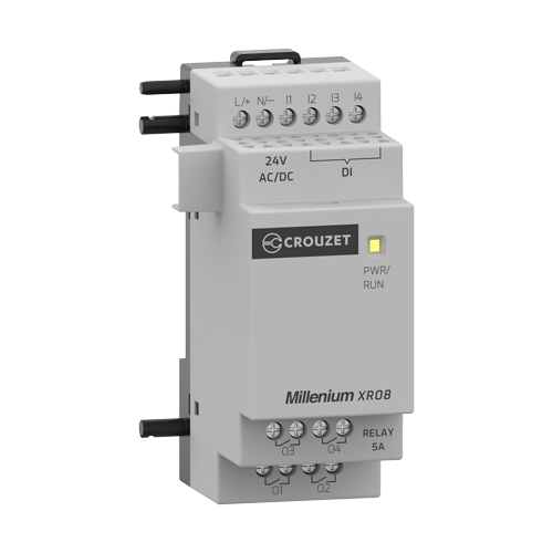 The 20 years of automation heritage with Millenium 3, have evolved into our New Millenium, making it a compact, versatile and communication-ready logic controller, for all your upcoming small-automation projects. We kept all the features you liked, with a refreshing twist to make it even better and easier. Now powered by Crouzet Soft, the easiest-to-use automation tool ever, for users of all experience levels, it's function block based and with no code needed!
