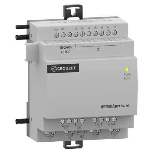 The 20 years of automation heritage with Millenium 3, have evolved into our New Millenium, making it a compact, versatile and communication-ready logic controller, for all your upcoming small-automation projects. We kept all the features you liked, with a refreshing twist to make it even better and easier. Now powered by Crouzet Soft, the easiest-to-use automation tool ever, for users of all experience levels, it's function block based and with no code needed!